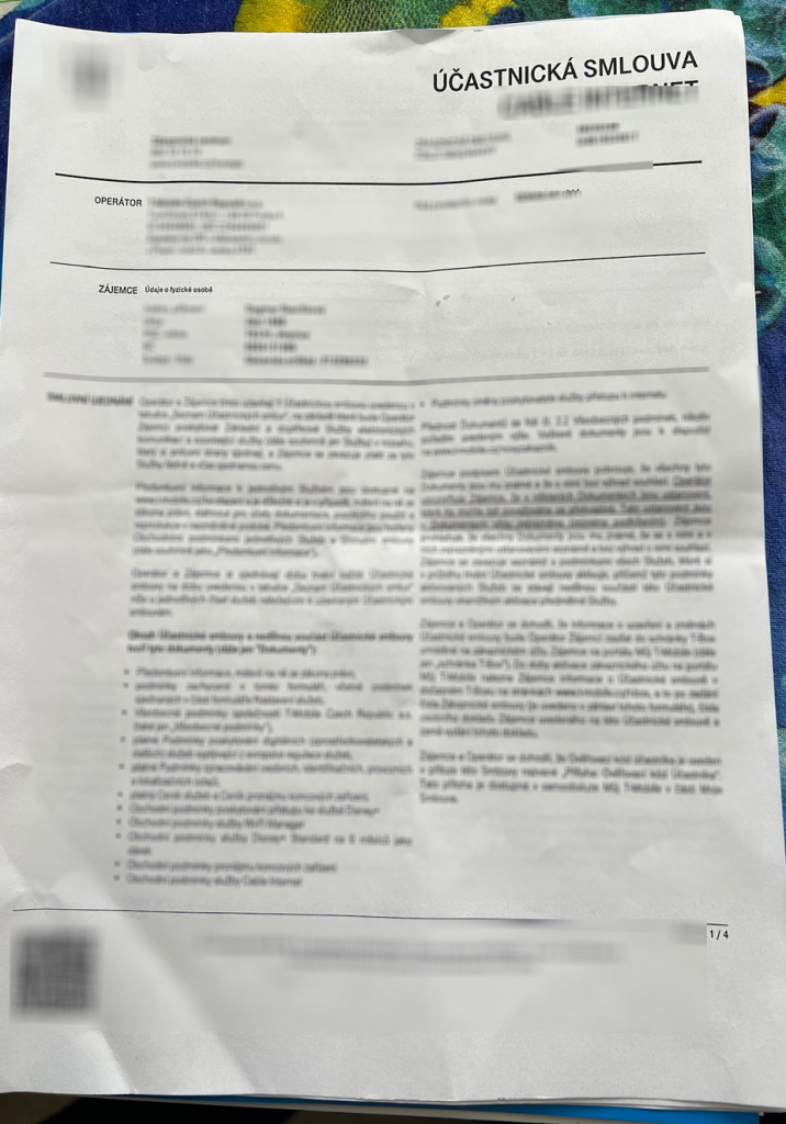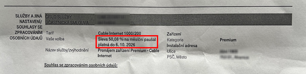 Postupně z ní vypadlo, že byla v prodejně jednoho ze tří velkých operátorů. Došla jí mobilní data a šla se jen zeptat. Odcházela ale s novým „výhodným“ pevným internetem. Sleva 50 % na 6 měsíců, potom 599 Kč měsíčně. Navíc kabelové připojení místo optiky. A technik měl přijet už v úterý.